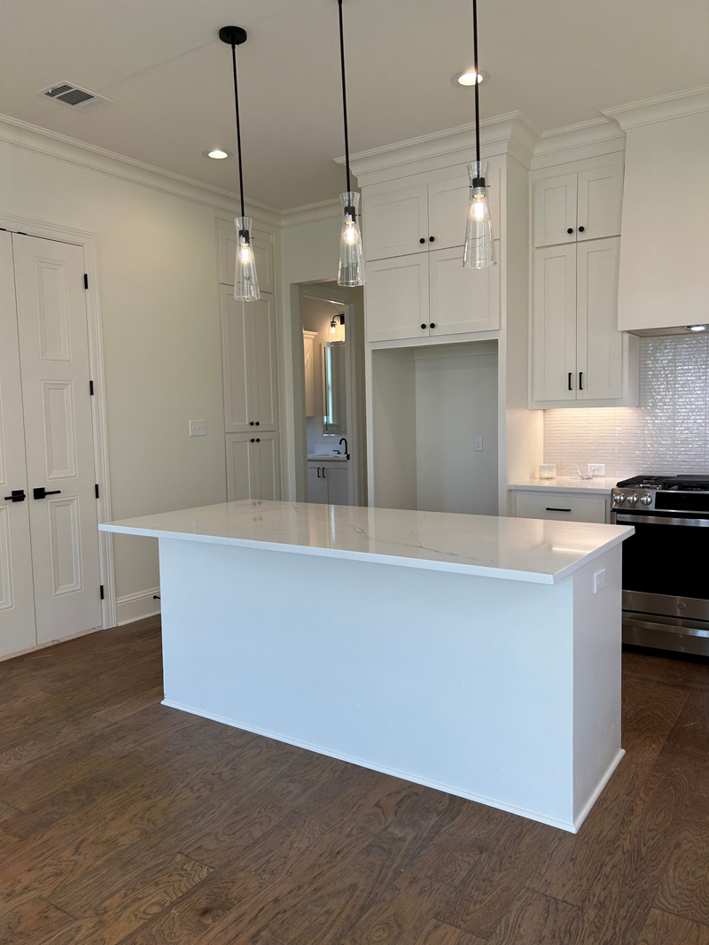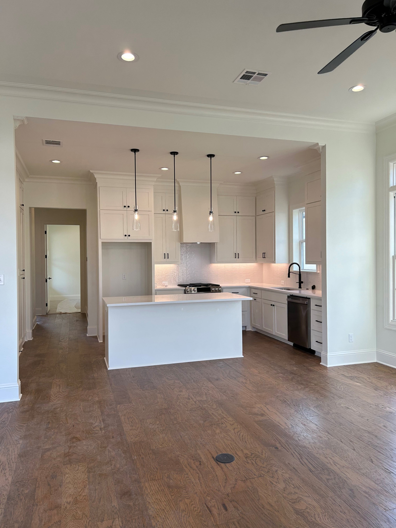 New Construction showcase single family home built for sale. Lovely open floor plan with dining area to the side. Kitchen has island for casual meal time. Laundry and pantry room to tuck items away. Secondary bedroom is just across from a full bath with tub shower combo. Primary bedroom has large walk-in closet. Primary bathroom has double sinks and large walk-in shower. Area at back door is great for an office space or a drop off. Two car garage has large walk-in storage room. Open side porch is just the place for a morning cup of coffee.